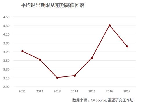 退出期限:自2013年开始,PE投资退出期限正逐步上升。这主要是由于2013年IPO重启后,监管力度加大,退出时间上升。但随着IPO发行的逐步常态化,以及并购监管的放松,2017年的退出期限已经较2016年4.3的高值有所回落。